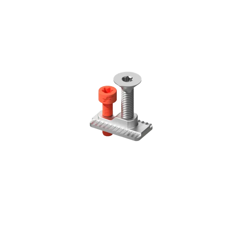 This clever and minimalist system allows the screws to be securely locked into the twin tracks – for quick, stable and efficient assembly. At the same time, it prevents T-nuts from coming loose or getting lost during assembly or handling.